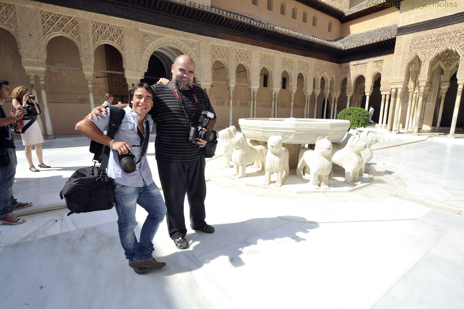 GR01. GRANADA, 27/07/12. El presidente de la Junta de Andalucia Jose Antonio Griñan ha inaugurado hoy la rehabilitación del patio de los leones de la Alhambra en el recinto nazari esta mañana. En la imagen el aspecto que presenta el patio de los leones tras años de obras de conservación.